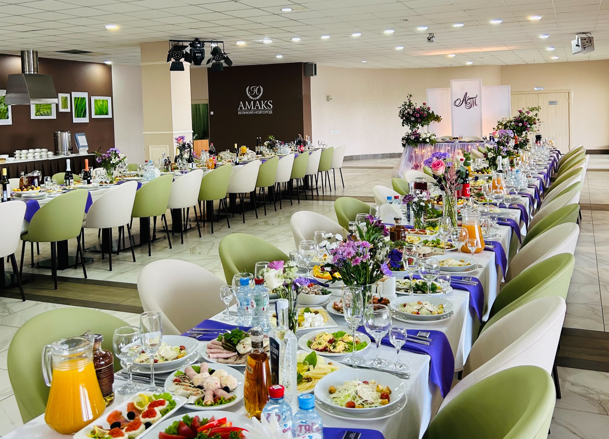 хватит места для всех и даже для танцпола! До 250 посадочных мест Детская комната Отдельные ниши для детского стола, подготовки ведущих или любых других целей