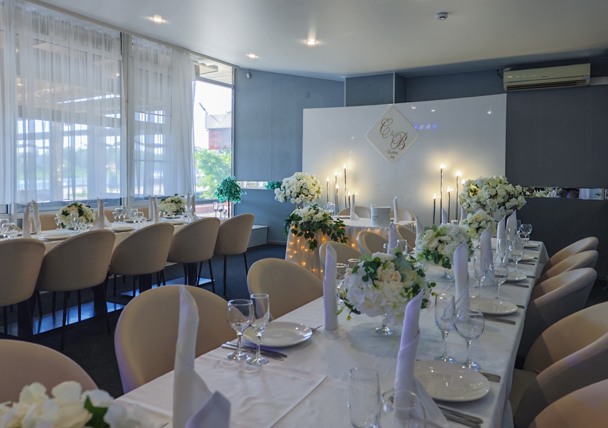 Залы на 250 и 40 гостей – для роскошного банкета или камерного ужина. Летняя веранда с выходом на набережную – романтика и живописные виды. Весь спектр услуг: меню от шеф-повара, номер для молодоженов, скидка в отеле для гостей свадьбы. Создадим незабываемый день вместе!